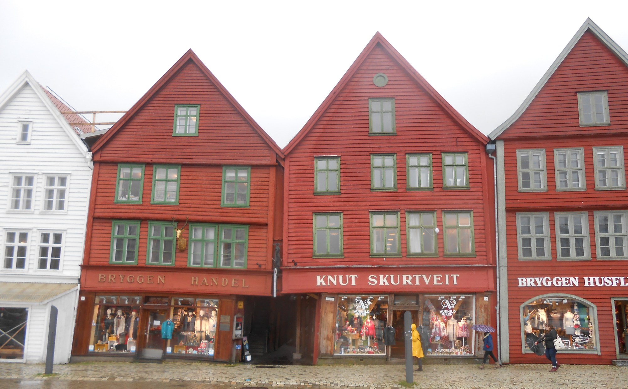 Bryggen, dont le nom signifie « le quai » en norvégien, est un quartier de Bergen datant de la fin du Moyen Age. En effet, à partir du XVème siècle, la ville fut un des ports les plus prospères de la Ligue Hanséatique, laquelle regroupa jusqu’à la fin du XVIIème siècle de nombreuses villes marchandes de la Mer du Nord et de la Mer Baltique. Avec ses dix-sept maisons colorées et alignées les unes à côté des autres, le comptoir de Bryggen pouvait entreposer à l’abri des intempéries diverses marchandises, dont principalement des céréales exportées de pays voisins ainsi que du poisson pêché dans les eaux froides de l’Atlantique Nord et destiné à être vendu dans l’Europe entière. Après le déclin de la Ligue Hanséatique, Bryggen continua des activités mercantiles jusqu’à la seconde moitié du XVIIIème siècle, et ce malgré les incendies successifs qui détruisirent certains entrepôts. Inscrit au patrimoine mondial de l’Unesco depuis 1979, le quartier est aujourd’hui essentiellement touristique, accueillant en lieu et place des anciens comptoirs marchands des restaurants et des boutiques de souvenirs. Deux musées retracent cependant l’histoire de Bryggen : le Musée de la Ligue Hanséatique et le Musée de Bryggen.