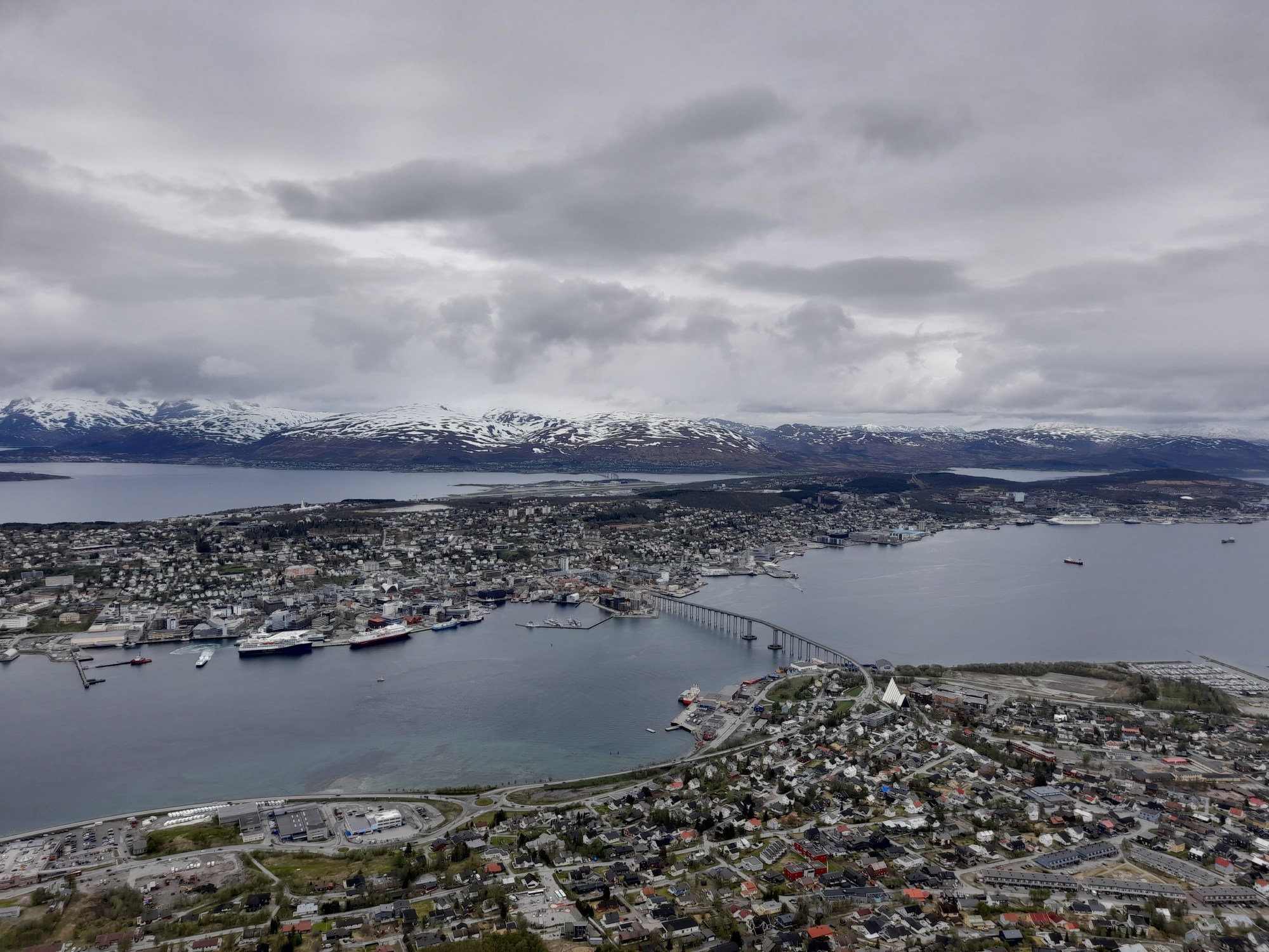 Il est des villes qui ressemblent plus à de grands villages qu’à de petites cités et Tromsø en fait partie. Située à près de 350 km au nord du cercle polaire arctique, la commune de Tromsø, avec sa population d’un peu plus de 70 000 habitants, détient le record de la « grande ville » la plus septentrionale du monde. Établie principalement sur une île (Tromsøya), la municipalité s’étend à travers plusieurs localités plus ou moins grandes sur l’île de Kvaløya à l’Ouest et le continent à l’Est, ainsi que sur de nombreux autres îles et îlots. Fondée officiellement en 1794 par le roi de Danemark et de Norvège Christian VII, les premières traces d’installation remontent au début du Moyen-Age, lorsque des chefs Vikings tentèrent d’instaurer des colonies toujours plus au Nord. Une preuve physique de la fondation de villages dans la région réside dans les restes d’une église en bois debout, laquelle, érigée en 1252, était à l’époque l’église la plus boréale du monde. Des Norvégiens vivaient donc déjà à Tromsø dès le IXème siècle sur le territoire de la population locale, les Samis.