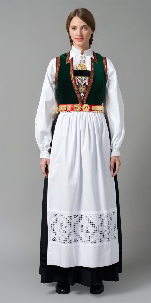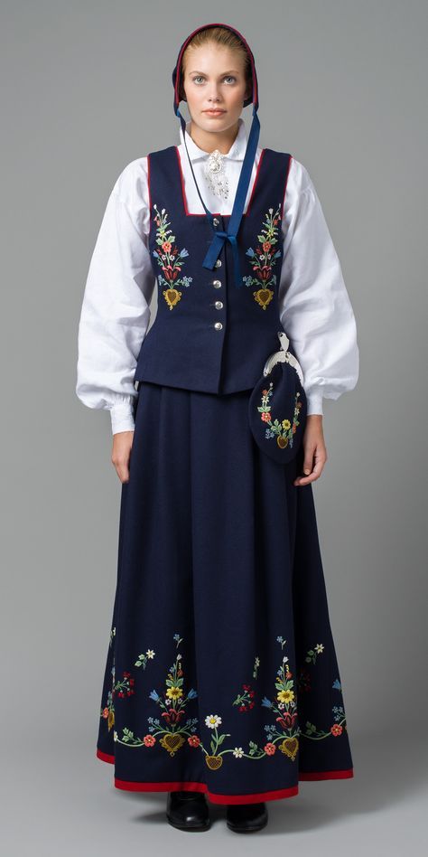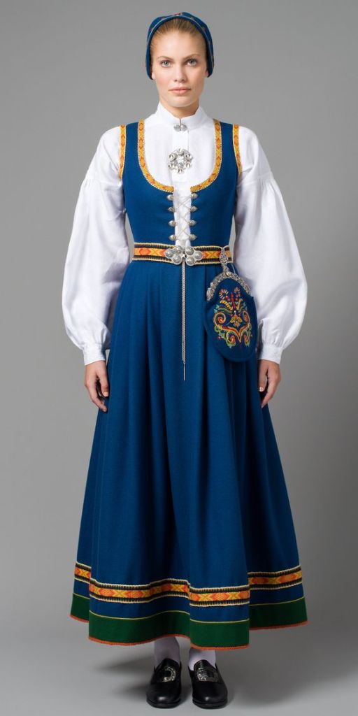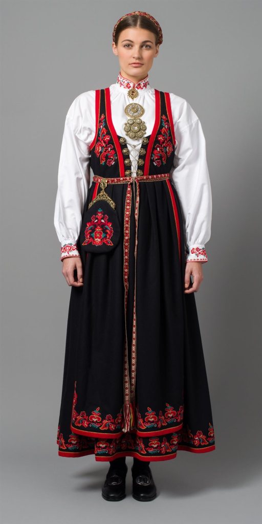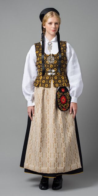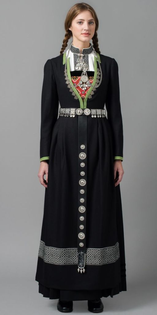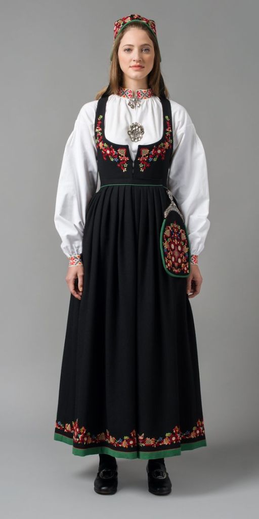 Pour les femmes, le bunad est composé d’un chemisier blanc, d’une longue jupe ou d’une robe tablier, parfois d’un corsage ou d’une veste, quelquefois d’un foulard et toujours d’une ou plusieurs broches. Pour les hommes, il s’agit d’une chemise, d’un gilet, d’une veste, d’un pantalon s’arrêtant aux genoux et de hautes chaussettes en laine. On retrouve des bijoux en argent sous forme de broches épinglées au niveau du col ou bien ornementant une ceinture ou une aumônière. Les femmes peuvent se coiffer de diverses sortes de bonnet, d’un voile ou d’une étoffe tressée en couronne, tandis que les hommes portent volontiers un chapeau ou un bonnet.