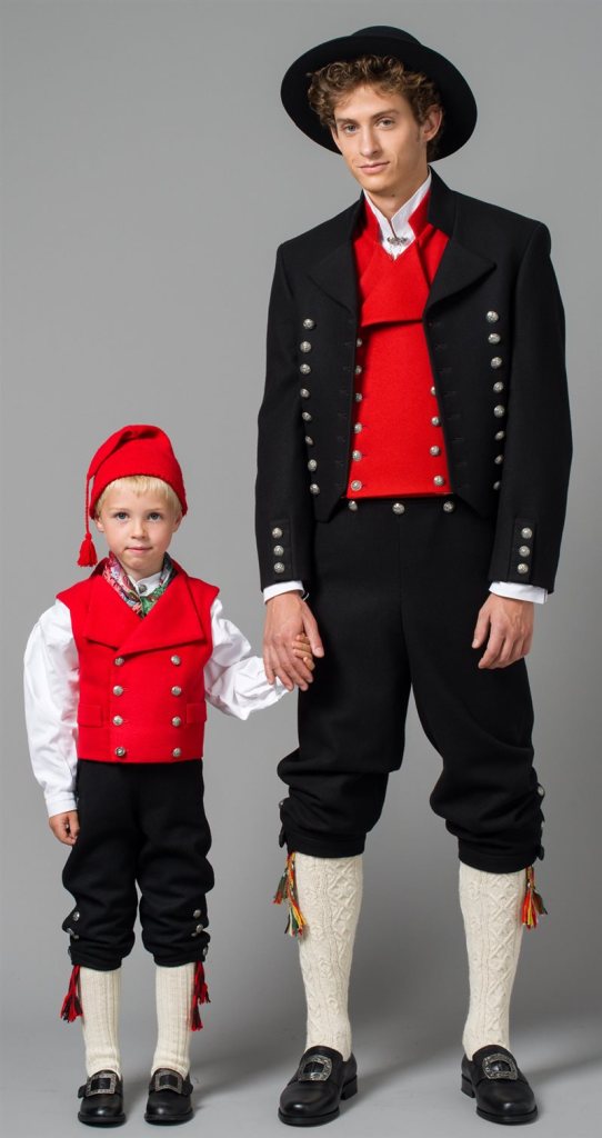 Pour le 17 mai, la fête nationale norvégienne, les Norvégiens portent généralement leur costume traditionnel, appelé le « bunad ». Différent d’un comté à l’autre, il est souvent confectionné dans des matières telles que le coton, le lin ou la laine et brodé de motifs colorés et inspirés de la nature. Pour l’agrémenter, on lui rajoute des boutons en argent et le décore de broches. Ses racines, qui remontent au Moyen-Age, sont un hommage aux ancêtres des Norvégiens, ainsi qu’à l’artisanat traditionnel. Le bunad reproduit la mode en cours dans les campagnes jusqu’au XIXème siècle, laquelle n’était pas la même d’une région à l’autre, d’une localité à l’autre.
