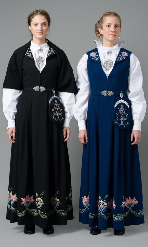 A gauche : bunad de l’Ouest du Telemark (Vest-Telemark), comté de Telemark