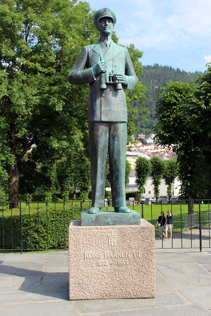 Il est le premier roi de Norvège depuis la fin du XIVème siècle. Après une longue période de domination danoise puis suédoise, Haakon VII est monté sur le trône du royaume de Norvège en 1905. Sous son règne, la pays a traversé l’histoire mouvementée du début du XXème siècle. Lors de la Seconde Guerre Mondiale, son rôle dans la résistance face au nazisme lui a valu les honneurs d’une statue à Bergen, dans le parc de Bergenhus.