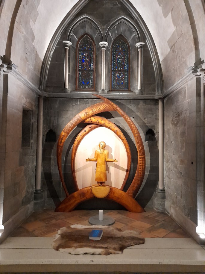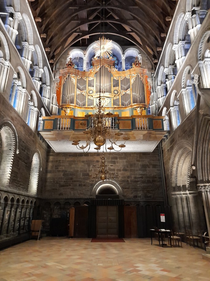 Si la cathédrale a été construite autour de la sépulture du roi Olav II, personne ne sait exactement où repose le saint souverain aujourd’hui. L’octogone, qui prolonge le chœur, abritait la luxueuse châsse contenant son corps jusqu’en 1537, avant d’être pillée de ses bijoux par les partisans de la Réforme, là même où elle avait été mise en sécurité, au fort de Steinvikholmen. Trente ans plus tard, le cercueil en bois du roi a été ramené à la cathédrale et enterré en secret quelque part sous les dalles, à un endroit encore inconnu. En tout cas, il veille depuis des siècles sur les dentelles de pierre et de verre qui habillent et illuminent magnifiquement l’édifice.