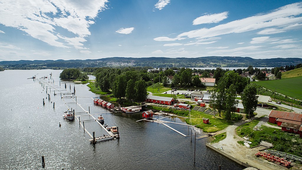 Plusieurs villes et villages se sont établis sur ses rives, comme Moelv, Brumunddal et Hamar, que le train traverse. Par exemple, à Brumunddal, on peut rencontrer la tour en bois la plus haute du monde : la Mjøstårnet. Construite sur 18 étages et haute de 85,4 m, elle a été inaugurée en mars 2019. Elle accueille des appartements, un hôtel, des bureaux, un restaurant, des salles de réception et une piscine. Elle a été conçue par le cabinet Voll Arkitekter.