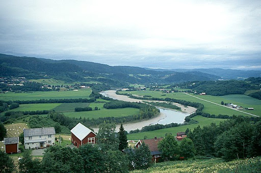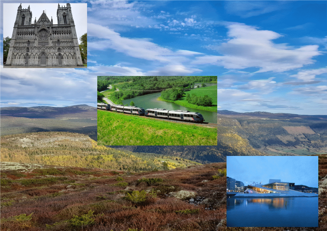 Passé ce triste souvenir, le train roule en direction de Heimdal. On y admire les paysages du Trøndelag, le comté qui occupe qui la partie centrale de la Norvège. Le voyage ayant lieu à la fin de l’été, la neige n’a pas encore habillé de blanc le pays. La ligne traverse alors la verte campagne, entre des prés où paissent tranquillement des vaches et des moutons et des collines couvertes de forêts de sapins. Il y a de petits villages qui rassemblent quelques maisons colorées ainsi que des fermes isolées, dispersées au gré des champs et des prairies.