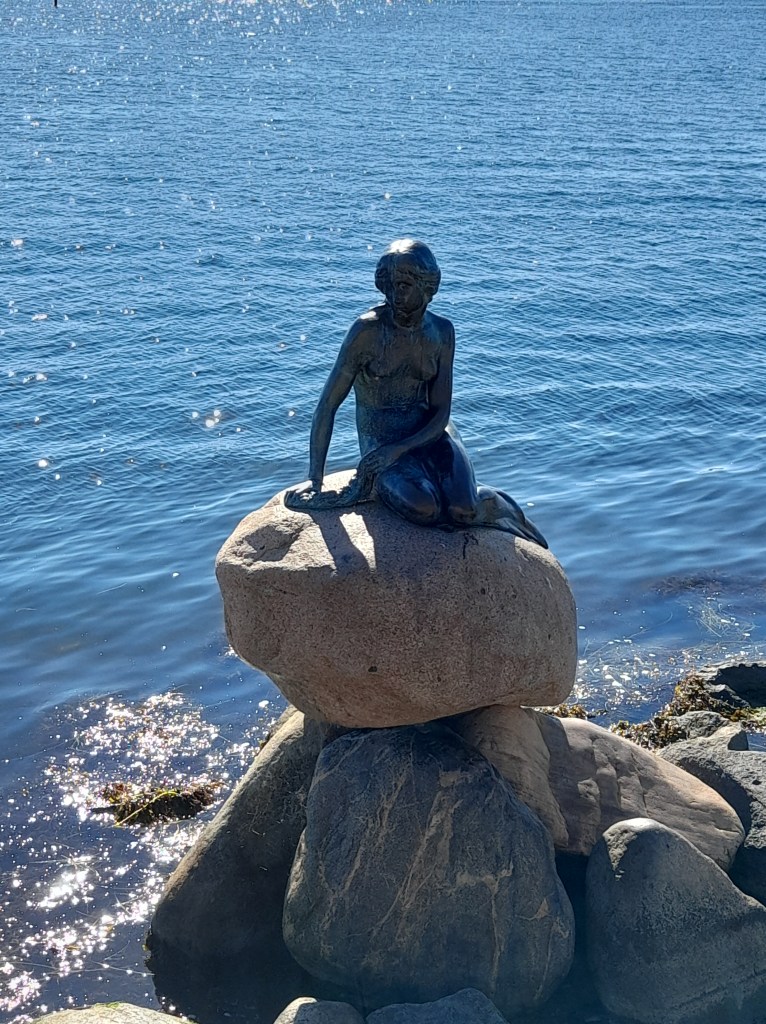 La marque de Hans Christian Andersen sur Copenhague se trouve encore dans une des plus célèbres attractions de la ville : la statue de la Petite Sirène (den Lille Havfrue). Située dans le port de Copenhague, du côté du parc Churchill, elle est en bronze et juchée sur un rocher. Elle a été commandée en 1909 par le mécène Carl Jacobsen, fils du fondateur et propriétaire de la brasserie Carlsberg, après avoir été subjugué par un ballet inspiré du conte d’Andersen. Il a ainsi demandé au sculpteur Edvard Eriksen de créer une statue. Ce dernier a alors invité la danseuse Ellen Price, la même qui avait incarné la Petite Sirène sur scène, à poser pour lui. Cependant, son modèle ayant refusé de se dénuder, Eriksen s’est contenté de reproduire le visage de la danseuse, tandis que c’est sa femme Eline qui a finalement prêté son corps à celui de l’œuvre. Ensuite offerte par Jacobsen à la ville de Copenhague, la statue a été érigée le 23 août 1913.