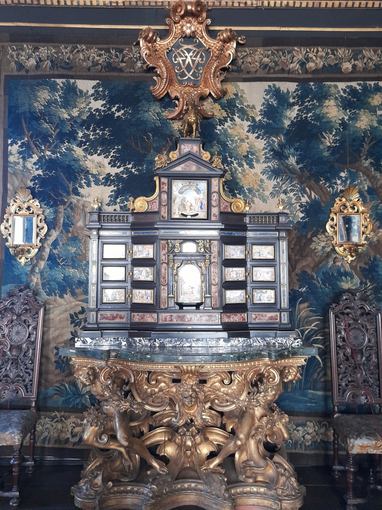 Enfin, la visite se termine par le trésor royal. On y trouve ainsi le glaive de Christian III, une imposante épée d’or et de pierres précieuses utilisée lors des couronnements. La couronne de Christian IV, richement ornée, est exposée, de même que celle de Christian V, laquelle a sacré tous les rois suivants jusqu’en 1839. Elle est présentée aux côtés de celle de la reine Sophie-Madeleine, épouse de Christian VI. La couronne est, avec le sceptre, le globe et l’ampoule, un des insignes royaux.