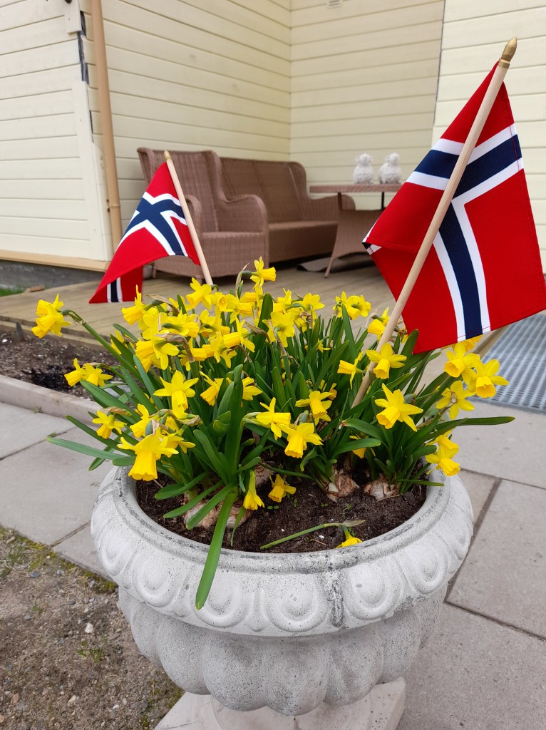 Toute la journée, on voit des drapeaux flotter au fronton des maisons ou en haut des mâts qui se dressent dans les jardins. On les remarque aussi plantés dans des pots de jonquilles, une fleur qui épanouit ses couleurs jaunes en même temps que le printemps s’installe. Comme motivé par le retour du soleil, c’est un jour de gaité, qui célèbre véritablement le peuple, à la fois son folklore et sa jeunesse. La fête nationale norvégienne est une vraie communion populaire, qui réunit tous les habitants d’un pays, qu’importe leurs origines sociales et ethniques, grâce à des symboles civils et citoyens.