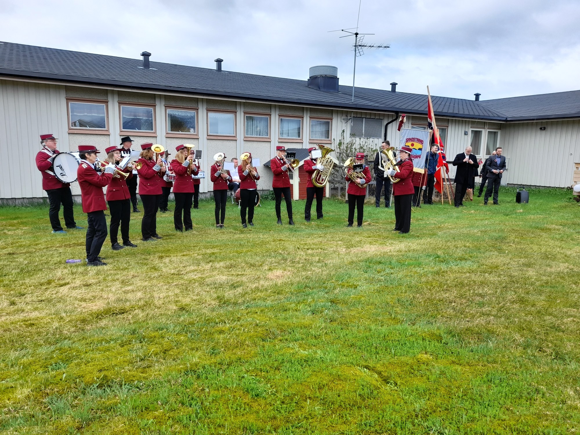 Au bout de quelques minutes, le cortège s’arrête devant la maison de retraite du village et la fanfare interprète plusieurs morceaux, dont « Il en faut peu pour être heureux », la chanson de l’ours Baloo dans « Le Livre de la jungle » de Disney, ainsi que l’incontournable « Ja, vi elsker dette landet », l’hymne national de la Norvège. Derrière les vitres de l’établissement, les pensionnaires observent l’évènement, venu rien que pour eux. Puis, après un discours d’un des organisateurs, la parade revient à la salle communale pour la suite des festivités.
