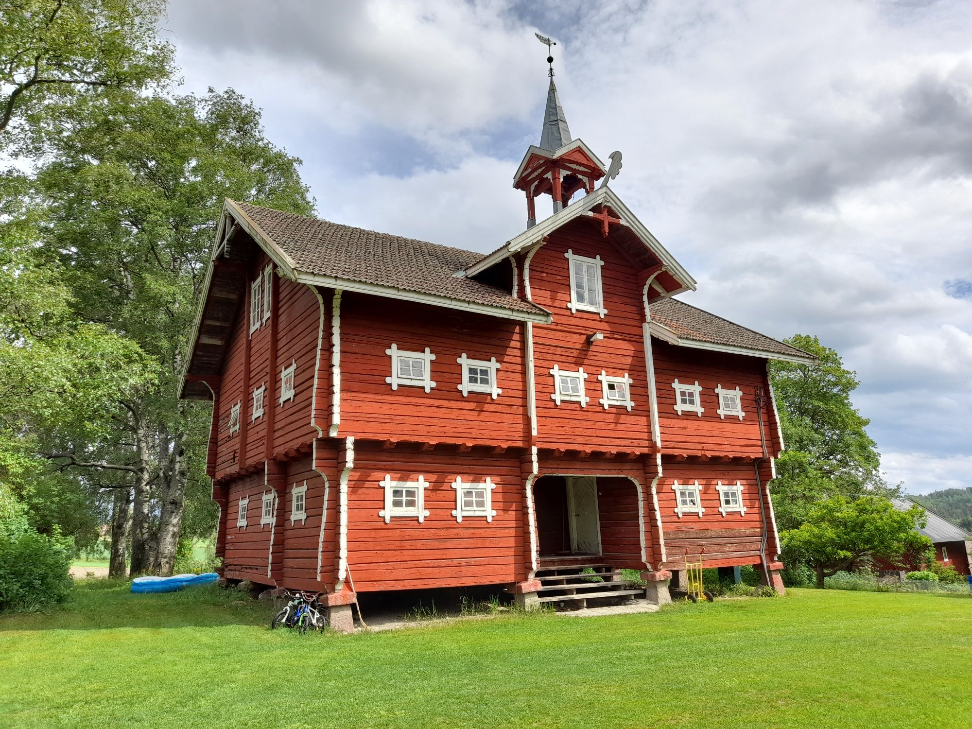 A une heure au Nord d’Oslo, dans la région historique du Hadeland, se trouve un moulin. N’ayant ni aile ni roue à aubes, il est automatisé et installé dans un stabbur, un grenier typique des campagnes norvégiennes. Celui-ci, datant du début du XXe siècle, se caractérise de la plupart des autres stabburs par sa grande taille, puisqu’il est construit sur trois étages. De plus, il est doté d’un clocher que l’on faisait autrefois sonner pour indiquer aux fermiers la fin du travail pour la journée. Aujourd’hui, il abrite un petit moulin, lequel moud différentes sortes de céréales, cultivées de façon biologique sur l’exploitation. On retrouve par exemple du blé de Dalécarlie, une région de Suède, de l’épeautre du Gotland, une île suédoise de la Baltique, ou de l’amidonnier, une des plus anciennes céréales domestiquées par l’homme. Ces céréales rares sont des trésors du patrimoine agricole à préserver, comme l’avoine noire, une variété que la ferme est une des seules à encore cultiver.