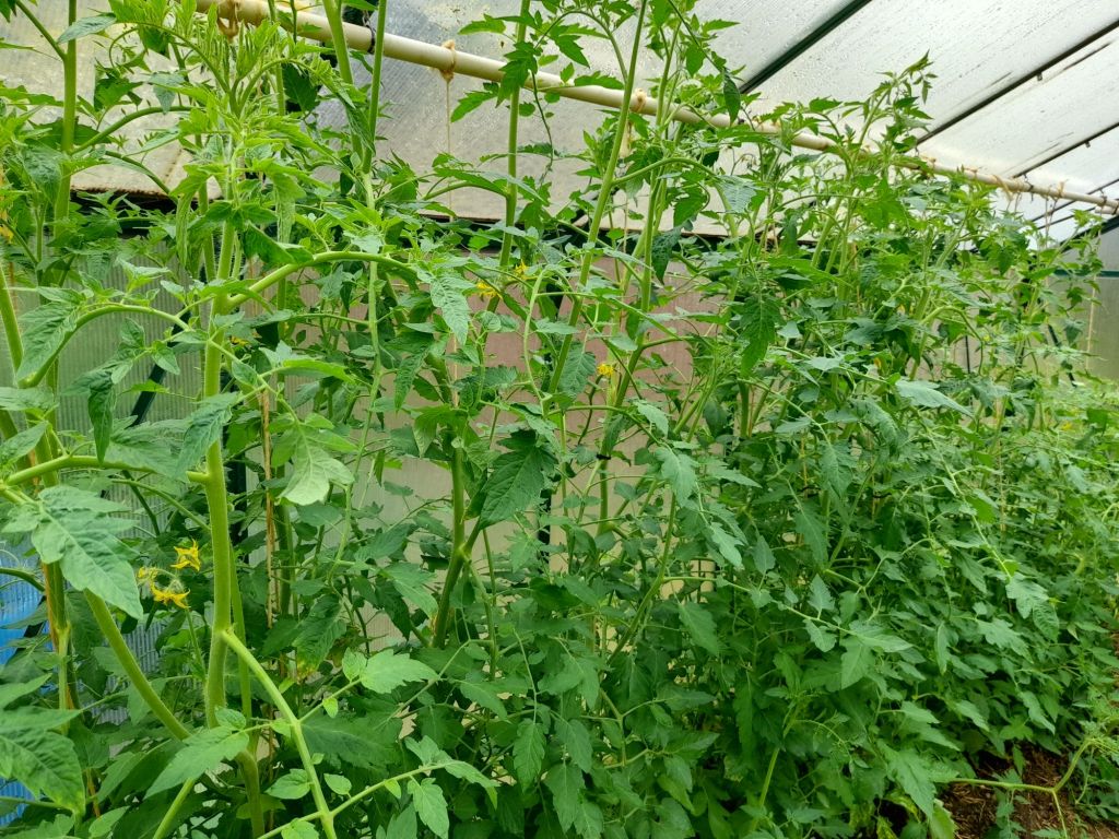D’autres fruits et légumes sont cultivés dans la ferme, dont des fraises, des carottes, des choux, des topinambours et des plantes aromatiques. Dans la serre, se trouve diverses sortes de tomates, ainsi que des concombres et des piments. Afin que les tomates poussent en hauteur et ne s’affaissent pas, des ficelles fixées au plafond de la serre et tendues vers le sol leur sont attachées. La serre, en conservant la chaleur et l’humidité, permet de cultiver plus facilement des plantes qui apprécient un climat plus chaud que celui de la Norvège.