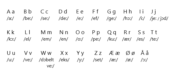 Que ce soit le bokmål ou le nynorsk, les deux utilisent un alphabet de vingt-neuf lettres. Les trois voyelles supplémentaires sont « æ », « ø » et « å », également présentes en danois. Toutes les lettres se prononcent de la même façon d’une forme à l’autre, sauf le « r », qui est roulé en bokmål mais grasseyé en nynorsk. De plus, on remarque des doublons en passant d’une langue à l’autre, où une ou plusieurs lettres sont souvent remplacées par les mêmes autres. Par exemple, en bokmål, on dit « øst » (est), « rød » (rouge) et « øye » (œil), ce qui devient, en nynorsk, « aust », « raud » et « auge ». De même pour « dyp » (profond), « syk » (malade) et « tykk » (gros) qui deviennent « djup », « sjuk » et « tjukk ». Aussi, les adjectifs finissant en -lig changent leur terminaison en -leg et les verbes réguliers se terminant en -et au participe passé prennent à la place un -a : farlig/farleg (dangereux), tidlig/tidleg (tôt), har laget/har laga (a fait), har elsket/har elska (a aimé)…