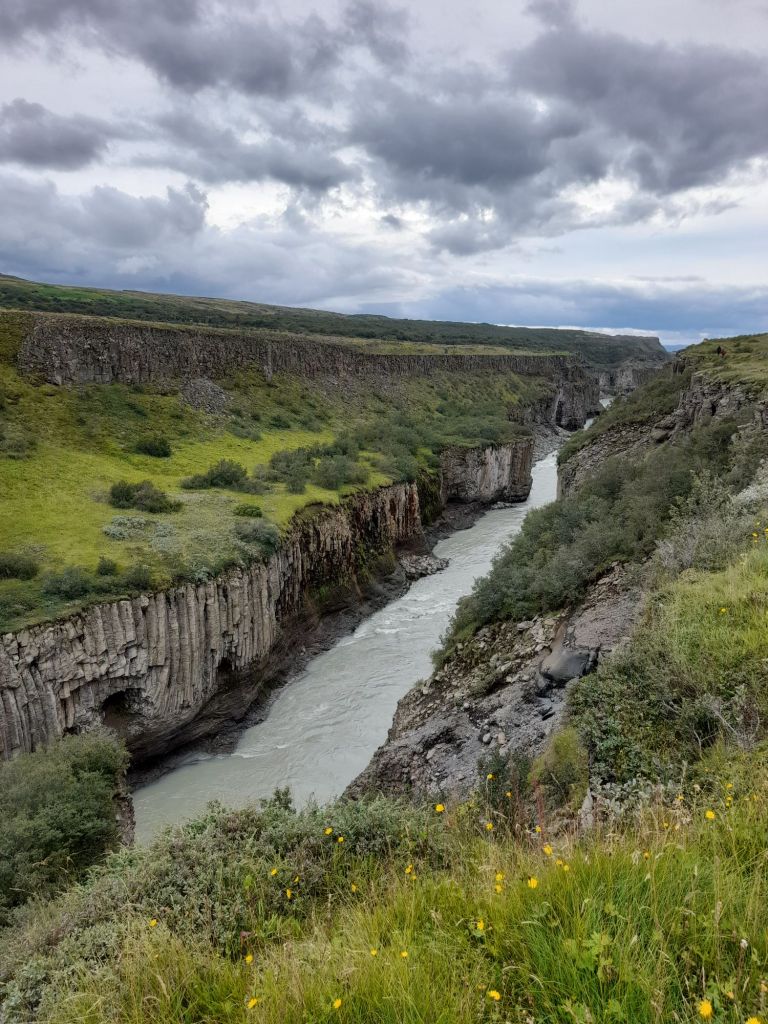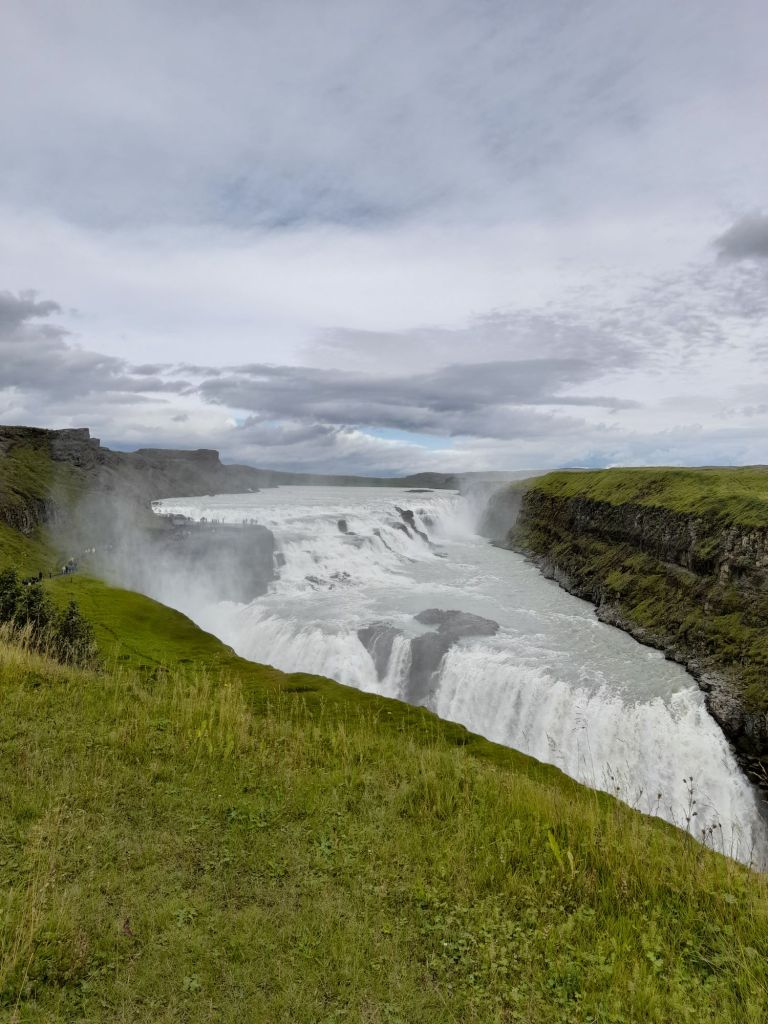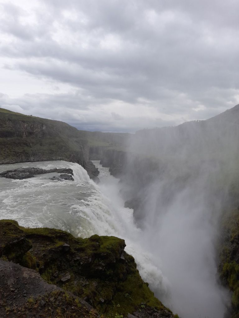 Enfin, la cascade de Gullfoss, soit la « Cascade d’or » en islandais, offre un spectacle impressionnant. Sur la rivière Hvíta, elle déverse des masses d’eau dans une étroite gorge, dominée par des parois d’orgues basaltiques. Convoitée dès le début du XXe siècle par des compagnies énergétiques pour en faire une centrale hydroélectrique, elle a été défendue par les habitants de la région. Propriété de l’Etat islandais en 1940, elle est protégée depuis 1979.